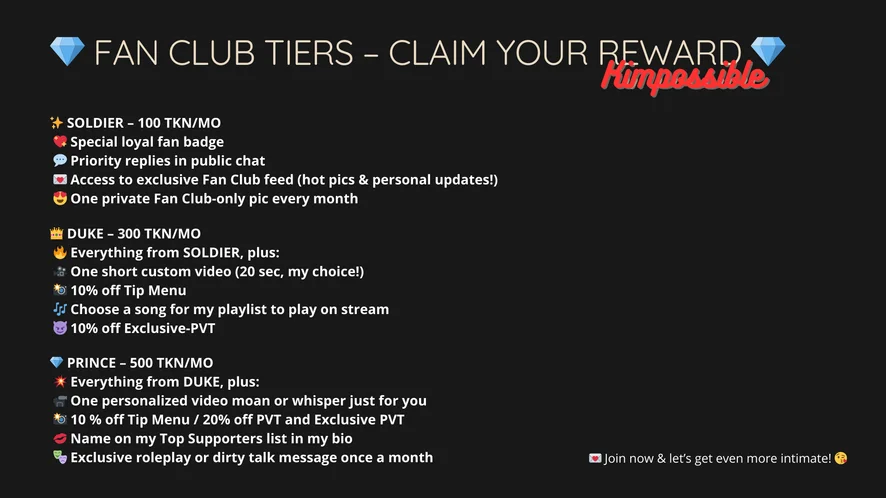 💎 JOIN MY FAN CLUB & GET SPOILED! 💎 Wanna get closer to me? 😏 Join my Fan Club for exclusive content, private perks & naughty surprises! Choose your level & let’s play! 💋🔥